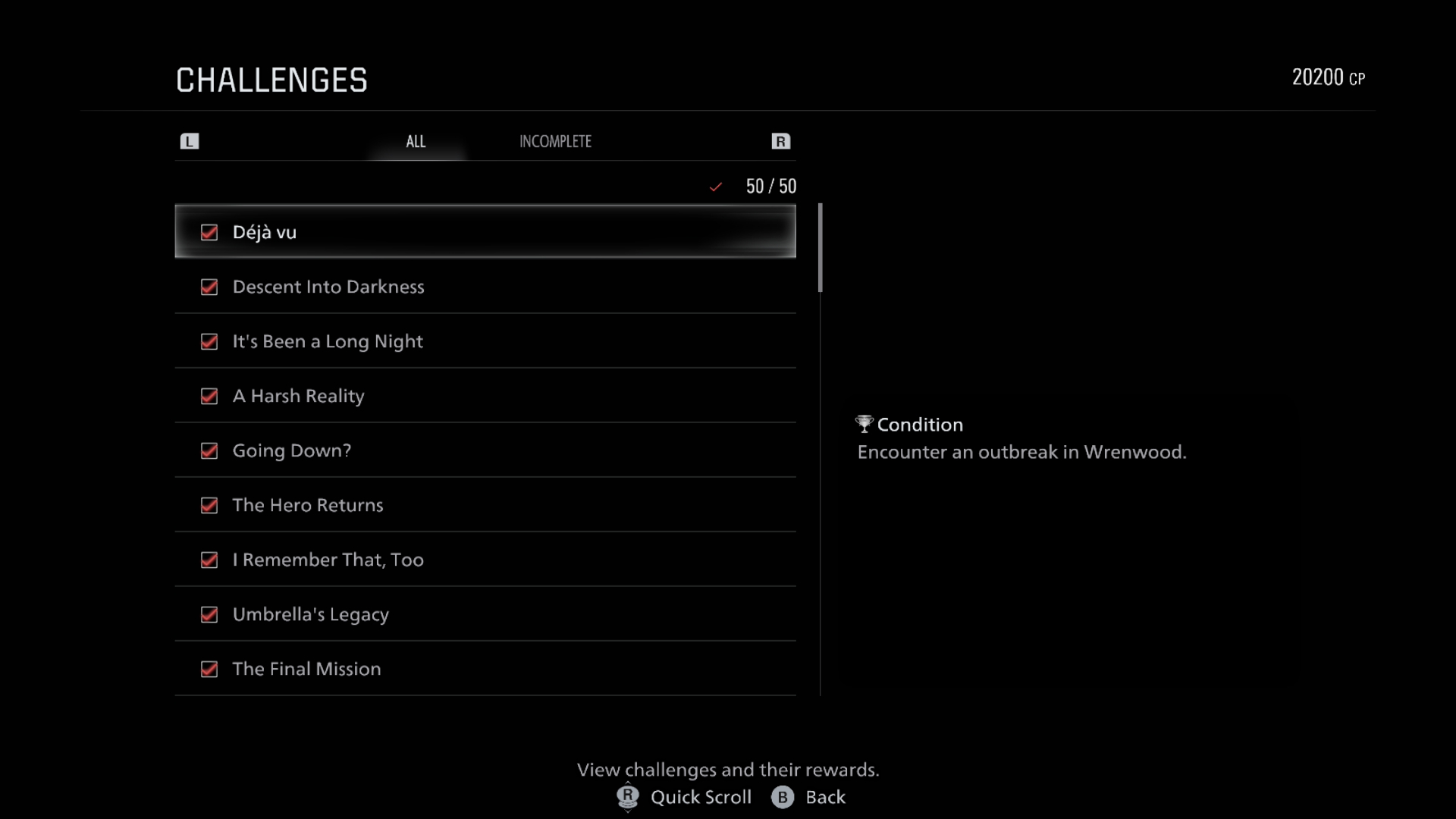 After beating and review Requiem, I thought now would be a great time to write out a Resident Evil Requiem challenges roadmap! I completed all 50 challenges and now you can learn my ways and also learn from my mistakes. Let’s begin.